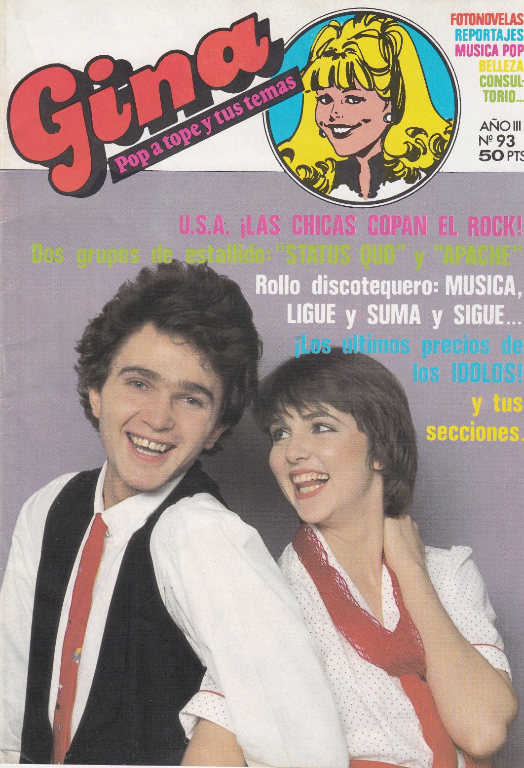 SPANISH MAGAZINE "GINA" HAD A BIG FEATURE ON QUO AND INCLUDED A FREE SINGLE IN A SEALED WHITE SLEEVE, THE STAMP ON IT MEANS FREE GIFT. MAGAZINE AND COVER BELOW.