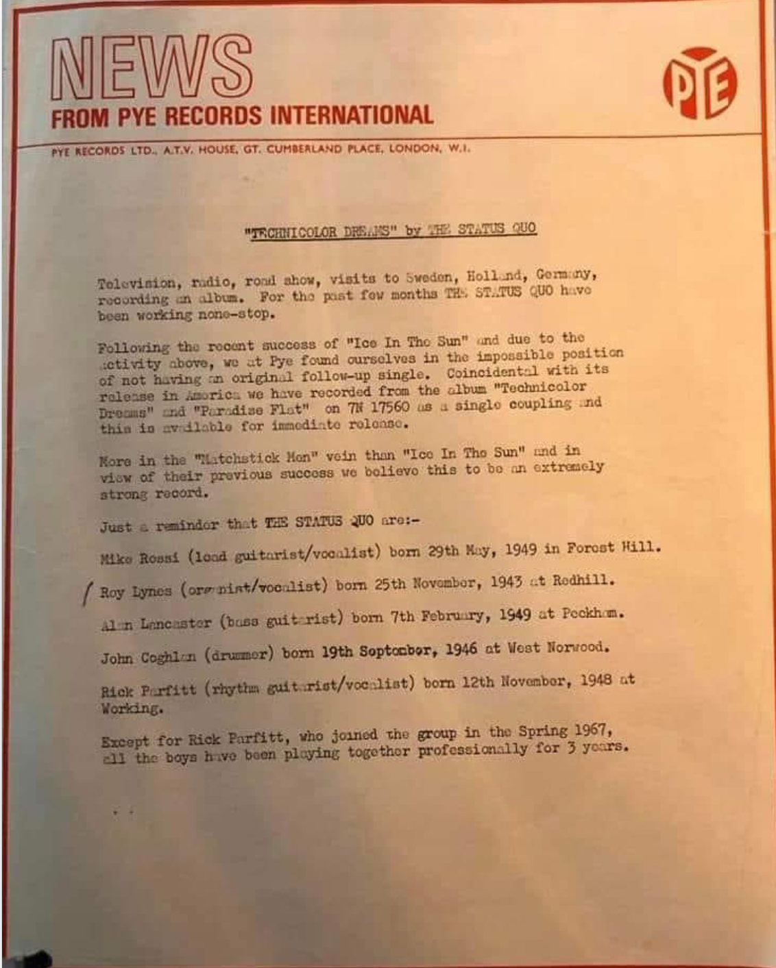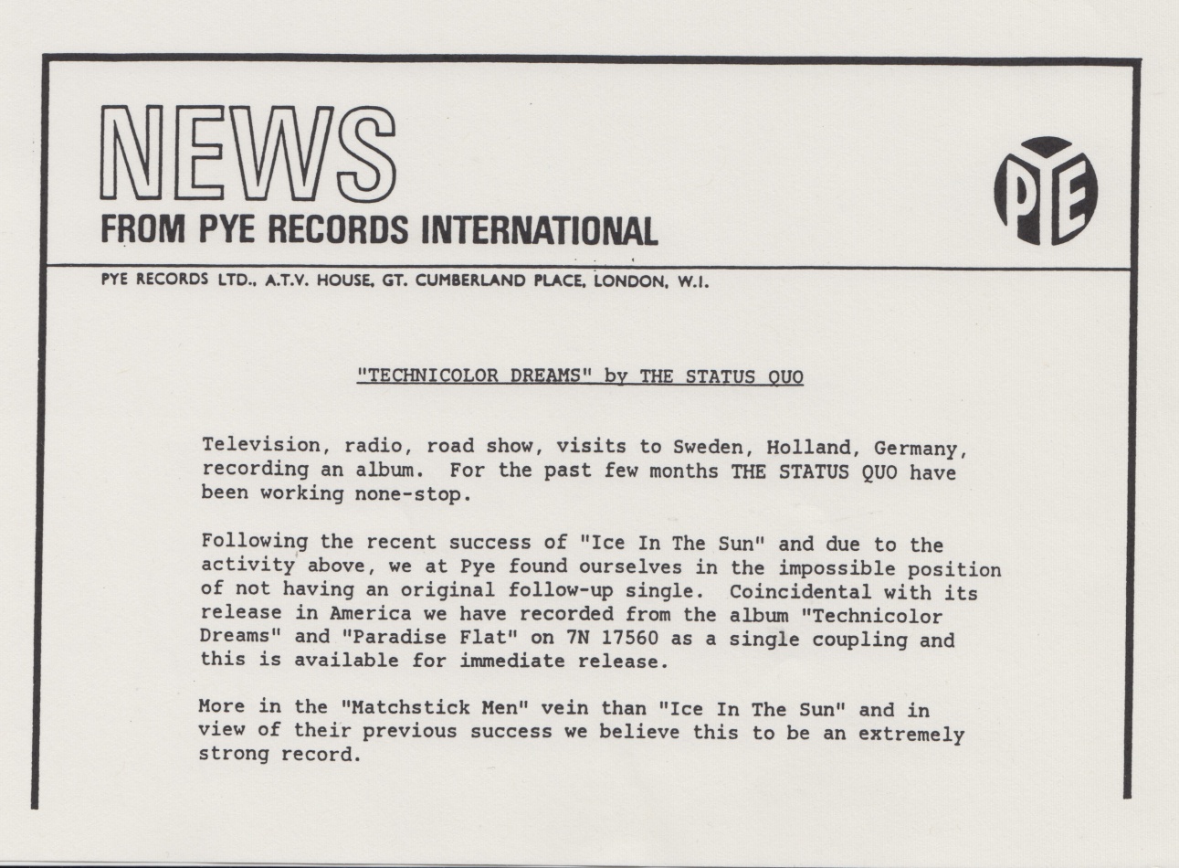 A "holy grail" for Quo collectors, the stock version of the single was withdrawn shortly before release. This probably explains the lack of a solid centre version. Promo copies are also exceptionally rare.
